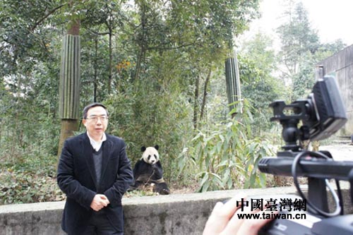 中国台湾网12月12日雅安消息 12月11日,台湾中天电视台《开放·新中国——秀芳点题》节目组一行赴雅安碧峰峡大熊猫基地开展专题采访拍摄,并专访了享有“熊猫爸爸”美誉的中国保护大熊猫研究中心主任、四川卧龙国家级自然保护区管理局局长张和民。
