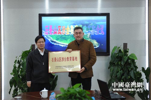 会上,李文起等领导为林献堂抗日事迹陈列馆颁发“石景山区涉台教育基地”牌匾,为北京市京源学校等4所中小学及职业学校颁发“石景山区青少年涉台教育基地”牌匾。