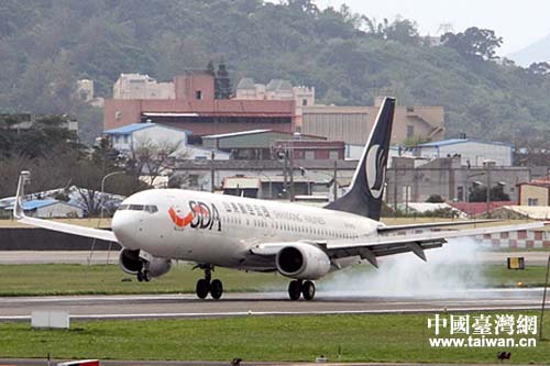 山航济南-花莲直航班机在台湾花莲机场降落。(图片来源:山东省台办)