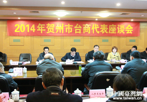 中国台湾网1月13日贺州消息 日前,广西贺州市召开2014年贺州市台商代表座谈会。广西台办副巡视员唐煦渊、贺州市副市长李振福参加座谈,与台商亲切交流。