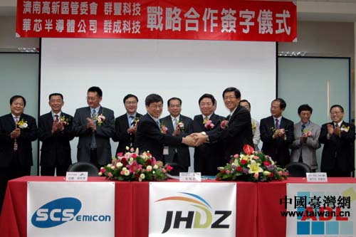 6月2日,济南市委王敏书记等在新竹出席济南高新区与群成科技公司项目签约仪式。(图片来源:山东省台办)
