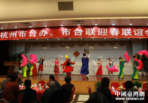 中国台湾网1月23日杭州消息 在两岸同胞喜迎传统新春佳节之际,杭州市台办、市台胞台属联谊会于1月22日共同举办迎春联谊会,400余位在杭台胞台属欢聚一堂,共庆传统新春佳节。市台办领导出席并致辞,市委统战部、市侨办、市侨联、各民主党派、工商联等部门负责人参加了活动。
