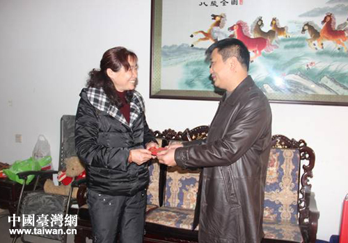 中国台湾网1月24日石门消息 1月22日,中共石门县委常委、统战部长夏先双走访慰问常住台胞赵诗赋先生和台属张桃元女士,为他们送去新春祝福。(中国台湾网石门县台办通讯员 粱琼华)