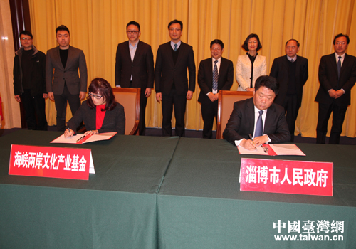 淄博市政府与来访的海峡两岸文化产业基金就合作项目达成意向。(图片来源:淄博市台办)