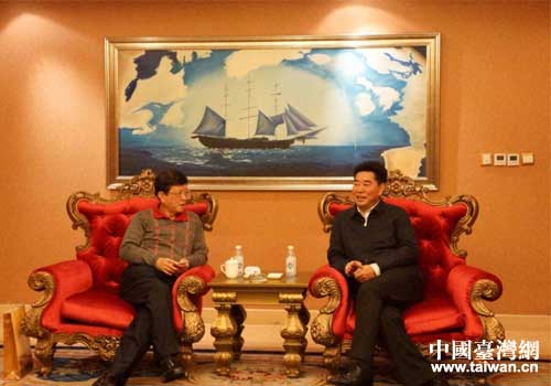四川省人大副主任、德阳市委书记李向志(右)会见台湾海峡交流基金会顾问江硕平(左)。(图片来源:德阳市台办)