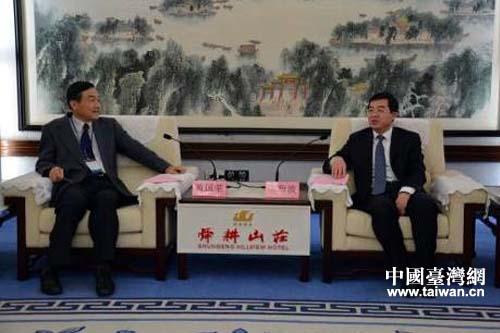 中国台湾网3月17日济南消息 3月14日, 台中市副市长黄国荣率台中市政府参访团在山东省济南市交流考察。济南市副市长张海波在济南舜耕山庄会见了黄国荣和参访团全体成员。济南市政府副秘书长耿建新、济南市台办主任李兆兵和市商务局、市文广新局、市金融办负责同志参加会见,并与台中市政府有关局负责人进行了交流。
