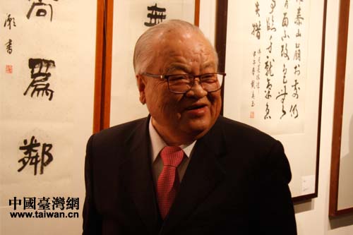 台湾中山学术文化基金会董事长许水德参观了海峡两岸名家书画展。(中国台湾网 雍紫薇 摄)