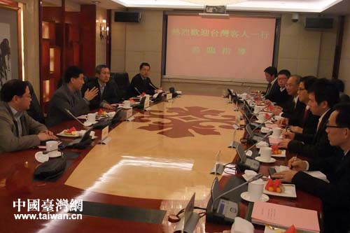 台湾大亿企业集团董事长在山东省商业集团总公司交流座谈。(图片来源:山东省台办)