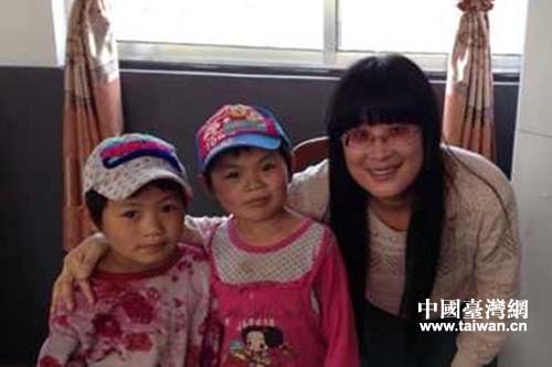 台企负责人与两名孤儿结成帮扶对子。(图片来源:沂南县台办)