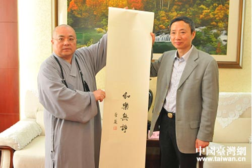 四川省台办主任周敏谦会见台湾法鼓山果东法师。(图片来源:四川省台办)