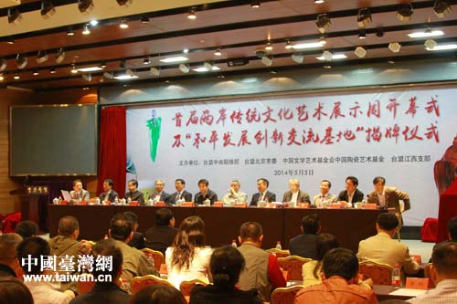 中国台湾网5月8日北京消息 日前,首届“大江论坛”系列活动之一的两岸传统文化艺术交流展示周活动在北京台湾会馆开幕。本次活动由台盟中央联络部、台盟北京市委、中国文学艺术基金会中国陶瓷艺术基金以及台盟江西支部共同主办。