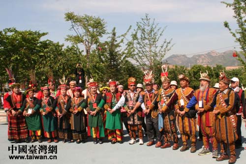 中国台湾网5月9日青岛消息 日前,台湾少数民族长老头目文化交流团来到山东青岛世园会,他们身着民族盛装,在世园会载歌载舞,献上祝福。