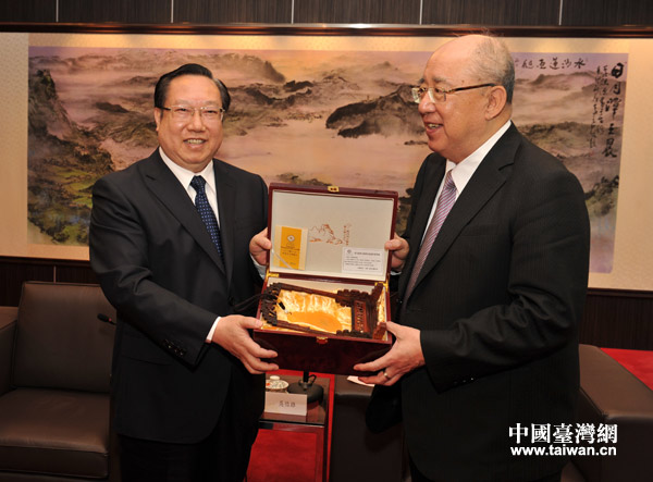 湖北省委常委、常务副省长王晓东会见国民党荣誉主席吴伯雄。(图片来源:湖北省台办)