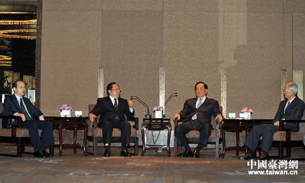 湖北代表团会见国民党荣誉主席连战。(图片来源:湖北省台办)