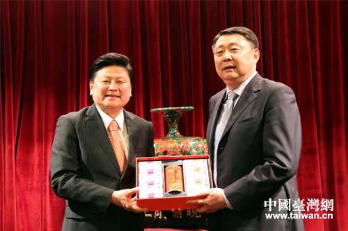 孙晓刚副市长与花莲县傅崐萁县长。(图片来源:济南市台办)