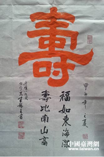 中国台湾网7月7日张家界消息 日前,应湖南张家界市台办的邀请,近90岁高龄的台湾桑植籍著名书法家王锡圭来到家乡挥毫泼墨,为乡亲们留下一幅幅珍贵作品。