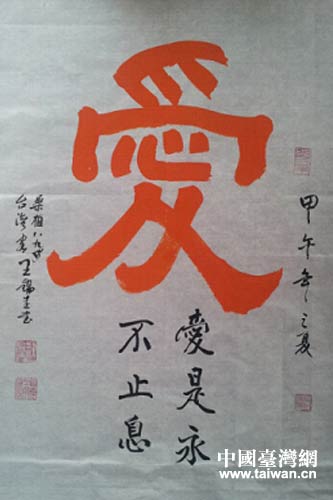 “1988年以来,我每年都要回大陆,有的时候是回家乡看看,有的时候是参加大陆的书法展。通过书法,以字会友,以书法传承中华文明,是一件有意义的事情。”“我也参加过韩国、日本等地举办的书法大展,将中华书法文化传播到世界,也是件功德无量的事。”