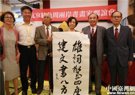 图为两岸书画家合影。(中国台湾网 栗琰 摄)