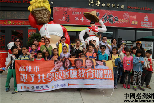 高雄市亲子共学与实验教育联盟学生与家长合影。(中国台湾网 栗琰 摄)
