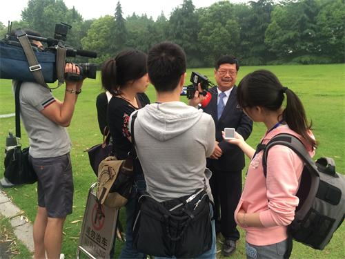 图为两岸记者采访泰州市台企协会会长叶俊晖。