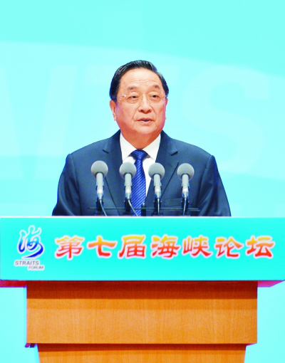 14日,中共中央政治局常委、全国政协主席俞正声在第七届海峡论坛开幕式上致辞。