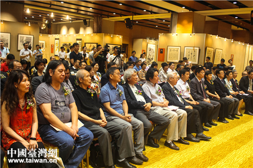 北京市委常委戴均良,中国文联副主席杨承志,全国台联副会长纪斌,北京市政协常务副主席沈宝昌,台盟中央副主席、北京市台联会长苏辉,北京市政协副主席、台盟北京市委主委蔡国雄,北京市人大民宗侨委主任黄强,北京市台办、北京市政协港澳台侨委会相关人员,以及来自海峡两岸的12位著名书画名家和各界人士出席了开幕式。