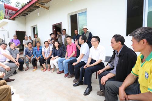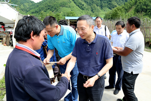 四川省台办主任周敏谦(中)慰问发旺村贫困户。(图片来源:四川省台办)