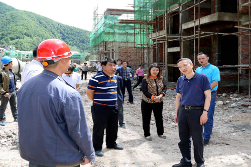 四川省台办主任周敏谦察看了解发旺村小学恢复重建情况。(图片来源:四川省台办)