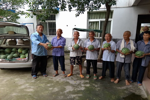 中国台湾网7月9日自贡讯 近日,四川自贡市沿滩区安谷田园业主、台胞吴振安先生在当地20名志愿者的协助下,先后前往沿滩区黄市镇、永安镇 、 刘山乡等8个乡镇的敬老院,将从自己的生态种植园里采摘的3000多斤优质西瓜,送到1000多名老人手里,让老人们在炎炎夏日里感受到了甘甜和清凉。(中国台湾网、自贡市台办、沿滩区台办联合报道)
