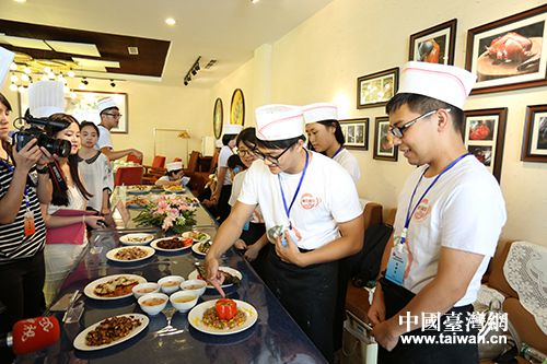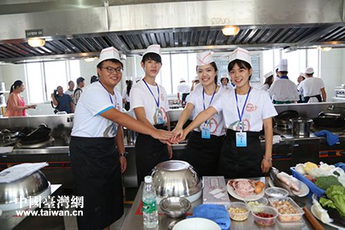 中国台湾网7月27日成都讯 7月23日,“寻麻问辣品四川”川台学生川菜文化体验营在四川旅游学院举行了一场妙趣横生的厨艺比赛。20名来自台湾与四川11所高校的大学生以4人一组为单位,精心制作出各式美味佳肴,为争夺第一名各出奇招。