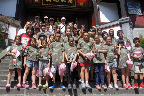 台湾新竹县桃山小学师生参观都江堰合影。(图片来源:四川省台办)