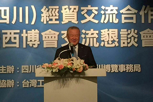 台湾工商协进会理事长、台玻集团董事长林伯丰致辞。(图片来源:四川省台办)