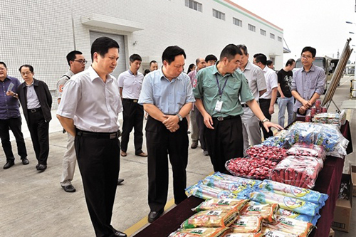 调研组一行在隆昌旺旺食品有限公司调研(图片来源:内江日报记者张雷)