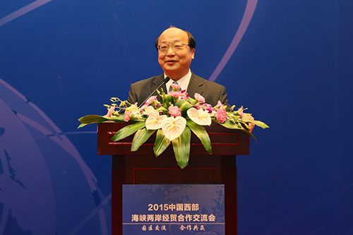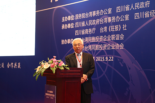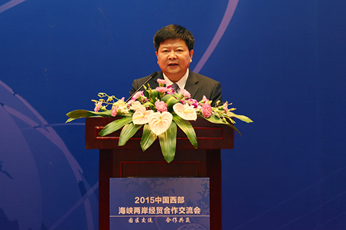 中国台湾网9月23日四川讯 9月22日上午,2015中国西部海峡两岸经贸合作交流会在四川举行,国务院台办副主任龙明彪,四川省政府副省长甘霖,四川省政协副主席杨兴平,中国国民党前副主席、台中市前市长、台湾旺旺集团副董事长胡志强、全国台企联荣誉会长丁鲲华等出席交流会。台湾知名产业园区负责人、专家学者、全国台企联及大陆部分台资企业代表,大陆各地和岛内的青年台商,四川省级有关部门负责人,重庆、云南、陕西等西部省市台办、涉台园区的代表,四川各地园区、企业有关负责人等共计300余人参加会议。