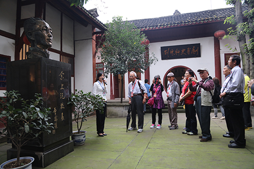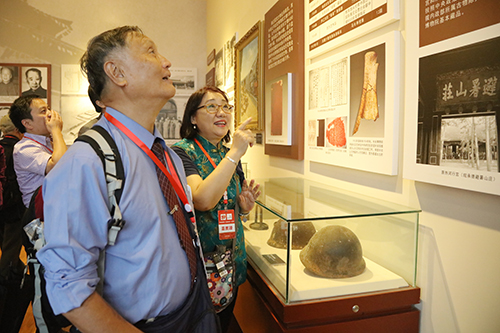 专程到宜宾参加活动的台湾嘉宾参观李庄文化抗战旧址。