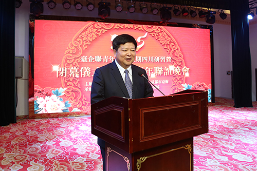 中国台湾网9月24日四川讯 9月22日,由全国台企联和四川省台办、成都市台办主办的“2015全国台企联青年团四川研习营”在成都举行闭营仪式暨川台青年联谊活动,国台办副主任龙明彪,四川省台办主任周敏谦,全国台企联会长郭山辉、荣誉会长丁鲲华、常务副会长兼秘书长何世忠等出席,川台青年企业家130余人参加。