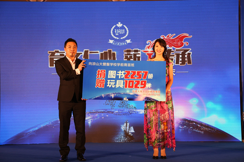 中国台湾网9月30日四川讯 日前,成都台资企业育文教育集团举行了一场别开生面的成立15周年庆典活动,结合“感恩”主题,特别向四川凉山大营盘学校的儿童捐赠数千件书籍和玩具。