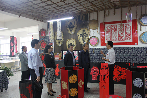 四川省台办主任周敏谦(右二)在游仙区慈济学校涉台教育基地考察调研。(图片来源:绵阳市台办)