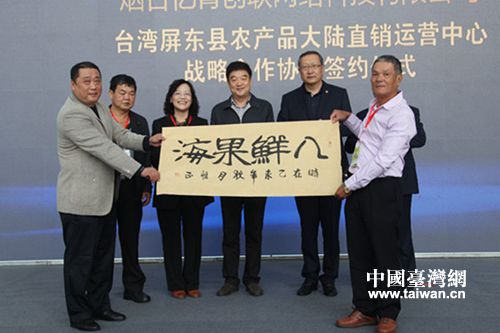 参访团16日参加了第十六届烟台国际果蔬食品博览会,并将从台湾带来的三千斤新鲜水果在果蔬会上展示,成为果蔬会的一大亮点。果蔬会上还举行了屏东县农产品大陆直销运营中心成立仪式和台湾原雅堂集团与烟台亿青创联网络科技有限公司合作协议签署仪式。