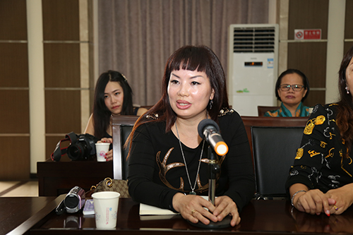 四川新娘易娟在座谈会上发言。(图片来源:四川省台办)