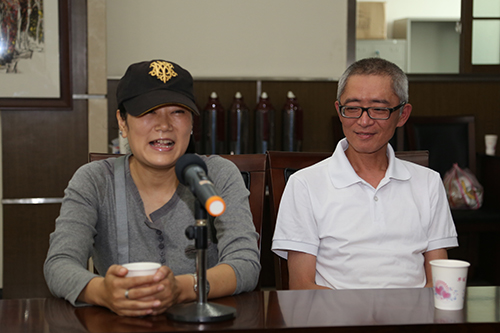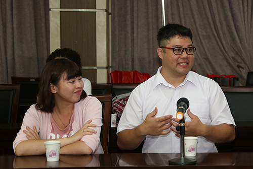 四川新娘邵璐露与台湾老公徐文坚在座谈会上发言。(图片来源:四川省台办)