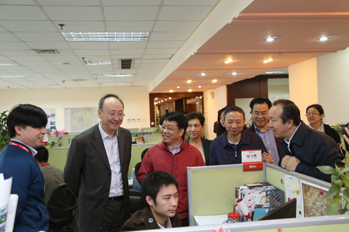 四川省委副书记尹力(左二)在台资企业纵横壹旅游科技有限公司调研。