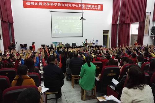元智大学科教中心老师分别在罗江县深雪堂小学、实验小学讲授了两场精彩的现场科学教学示范课,罗江县300余名师生、家长参加。示范课秉持“科学好好玩、好好玩科学”的理念,以全新的模式开展趣味、互动、体验式教学,将科学知识贯穿到老师和学生的游戏互动过程之中,现场用生动有趣的科学实验演示气压、吹风机、干冰的科学原理和表现形式,增加了知识的趣味性,增强了学生理解力和接受度。学生在教学过程中踊跃参与,现场观摩的教师家长一致给予好评。