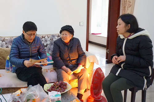 四川省台联会长刘琪(左)看望慰问威远县老台胞吴世界(中)