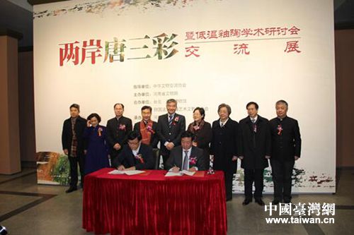 中国台湾网1月20日郑州讯 1月19日上午,由中华文物交流协会指导、河南省文物局主办、河南博物院与台北历史博物馆及鸿禧艺术文教基金会共同承办的“会古通今——两岸唐三彩暨低温釉陶学术研讨会及两岸唐三彩交流展”在河南博物院隆重举行。国台办交流局副局长李京文、中华文化交流协会副会长、国家文物局副局长刘曙光、河南省文物局局长陈爱兰、省台办副主任尚润泽、河南省博物院院长田凯,台北历史博物馆馆长张誉腾、台湾鸿禧艺术文教基金会廖桂英女士,以及两岸文博机构和高校的40余位古陶瓷及低温釉陶领域的专家学者出席开幕式。刘曙光、陈爱兰、张誉腾、田凯等两岸文物界有关领导做了热情洋溢的致辞。