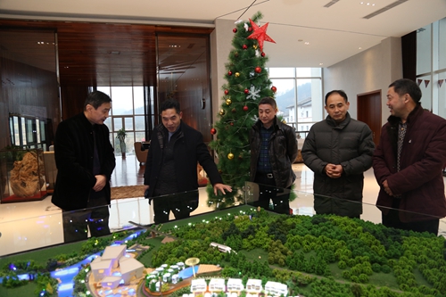 四川省台办副主任赵宇(左二)走访调研广元市昭化区台资企业巨石温泉。