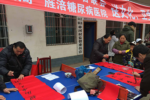 此次“三下乡”活动分别在牵河村和新拱桥村各开展半天。活动中,市台办、市司法局的机关干部、律师和台联会理事向村民发送法治宣传资料,开展普法教育和法律咨询,并结合志愿服务积极开展社会主义核心价值观和精神文明宣传。来自德阳市骨科医院、市口腔医院的台属医生和旌涪糖尿病医院的医生为群众进行义诊,免费发放常用药品。葛禄生、罗富荣等台属知名书画家和文斗、马玉萧、杨泽禄、陈家前等知名书法家为村民书写猴年春联,送去节日祝福。