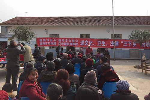 中国台湾网2月4日四川德阳讯 2月1日,德阳市台办牵头组织市司法局、市台联会及旌涪糖尿病医院党员干部、律师、专科医生以及台联会常务理事、台属知名医生、书画家共32人,前往“精准扶贫”联系村中江县南山镇牵河村和新拱桥村开展送文化、卫生、法律“三下乡”志愿服务活动,当地数百名群众踊跃参与了活动。