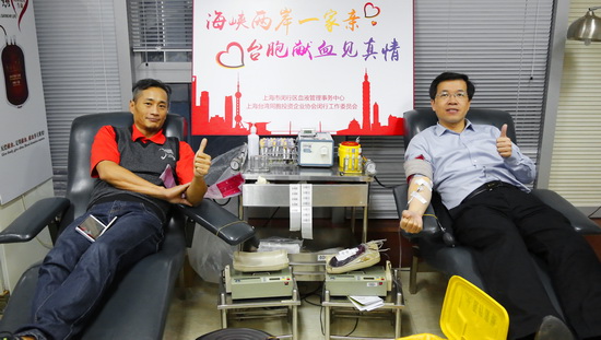 谈到为什么参加义务献血活动,刚献完血的台胞黄学通一边按着手臂上的酒精棉球,一边兴奋地说,习近平在习马会上说,两岸同胞是一家亲,打断骨头连着筋,我们台胞、台商在上海创业、工作和生活,得到了大陆各级大力支持和帮助,现在两岸关系融合度愈来愈高,我们台胞、台商义务献血,为大陆同胞用血提供方便,让两岸台胞的血融合在一起,那才是一家人那。
