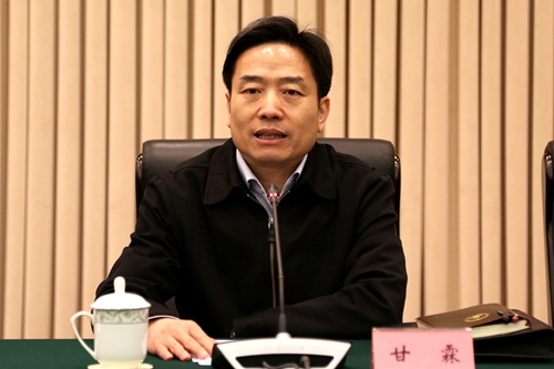 四川省副省长甘霖主持会议。(图片来源:四川省台办)
